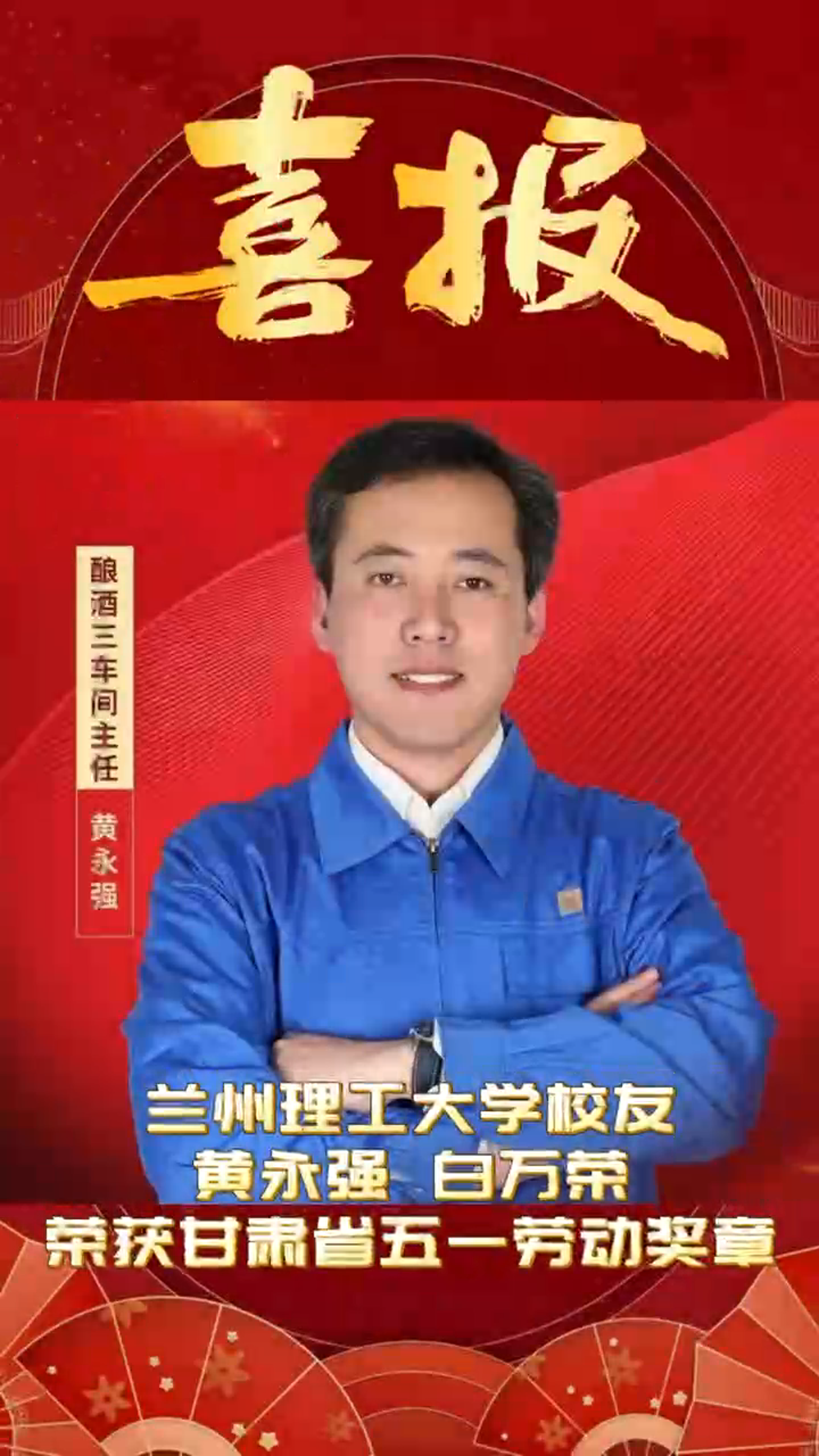 校友黄永强、白万荣荣获“甘肃省五一劳动奖章”